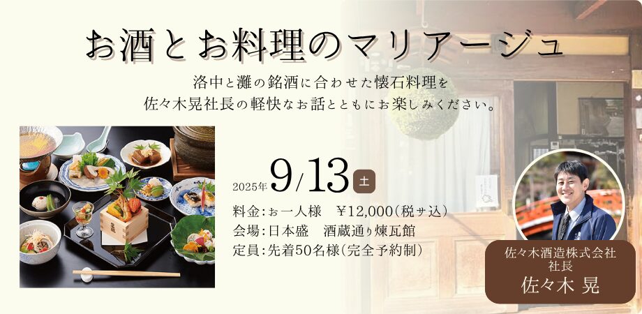 - 9/13(土):『お酒とお料理のマリアージュ』in 兵庫