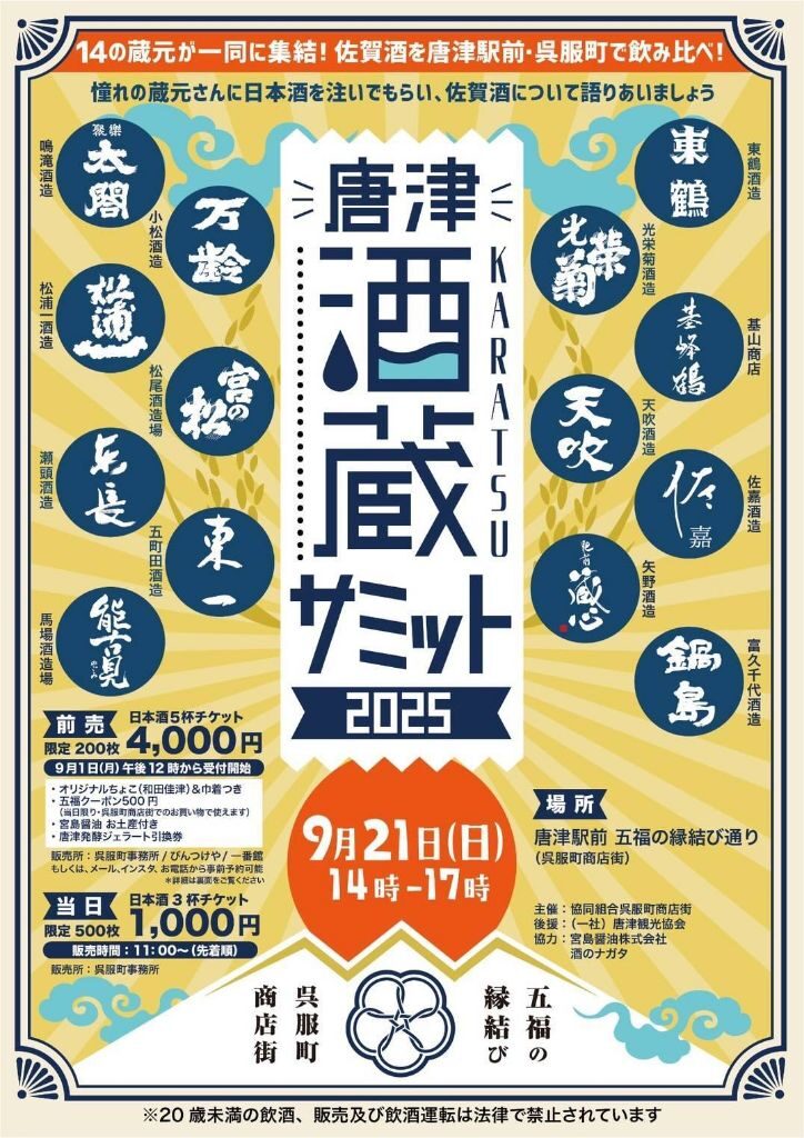- 9/21(日):『唐津酒蔵サミット2025』in 佐賀