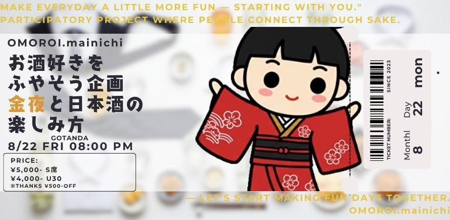- 8/22(金):『~お酒好きをふやそう企画~『金夜と日本酒の楽しみ方』in 東京