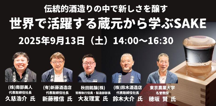 - 9/13(土):『世界で活躍する蔵元から学ぶSAKE』in 東京
