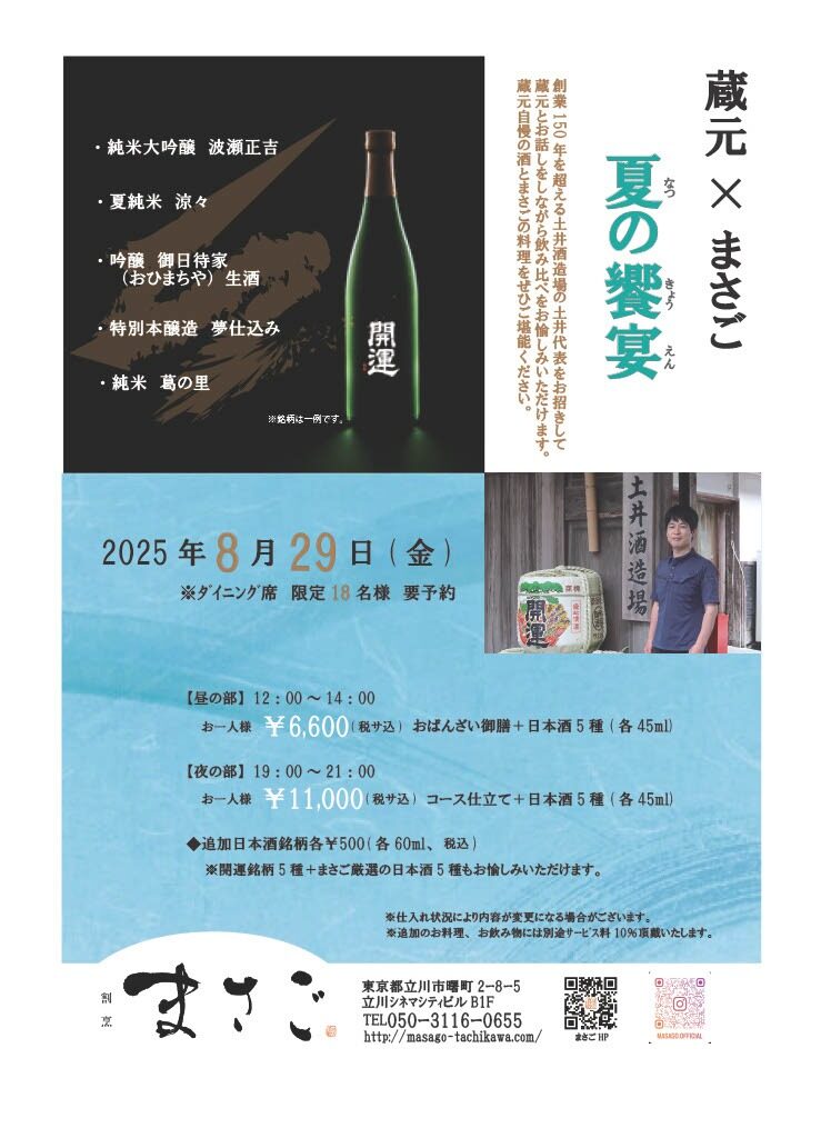 - 8/29(金):『蔵元×まさご 夏の饗宴』in 東京