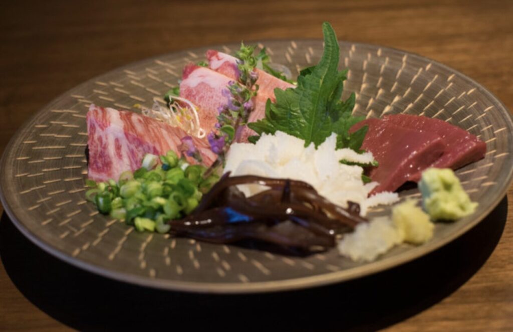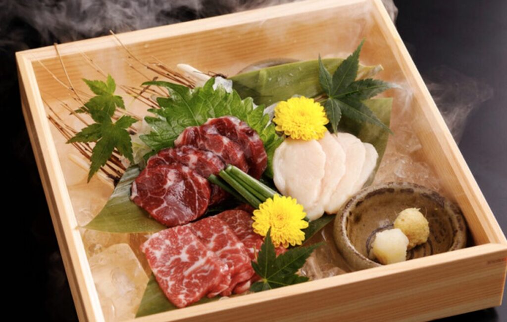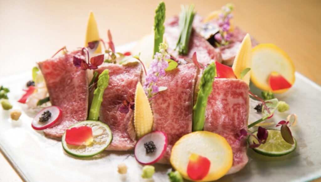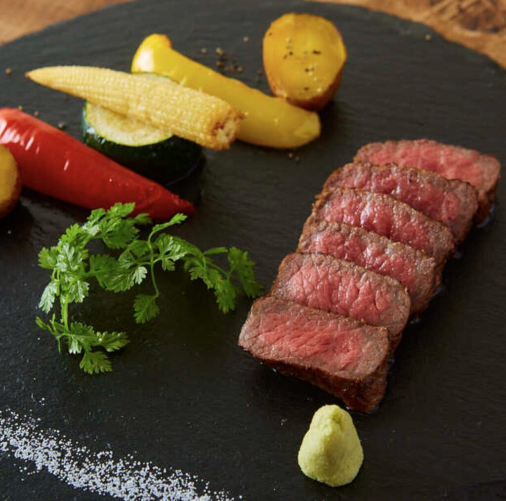 鹿児島の豊かな自然が育んだ極上の黒毛和牛。その繊細な肉質と、赤身と脂の絶妙なハーモニーが、ひと口ごとに感動を呼びます。希少部位はもちろん、サーロインの焼きすきや名物「メガロース」、さらに注目の創作「りんご巻き」など、多彩な逸品を贅沢にご用意。ご宴会には、飲み放題付きのコースもおすすめ。
