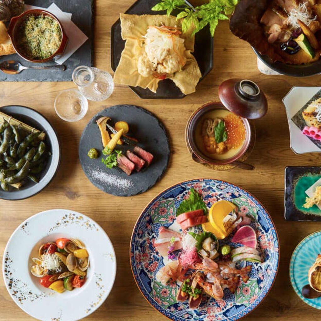 四季の移ろいを映す旬の食材を厳選し、素材の持ち味を最大限に引き出した美しい一皿の数々をご堪能いただけます。料理長が目利きした野菜や魚介、華やかな盛り付け、香りの演出、心を尽くしたサービス——五感すべてで味わう贅沢なひとときをお届けします。