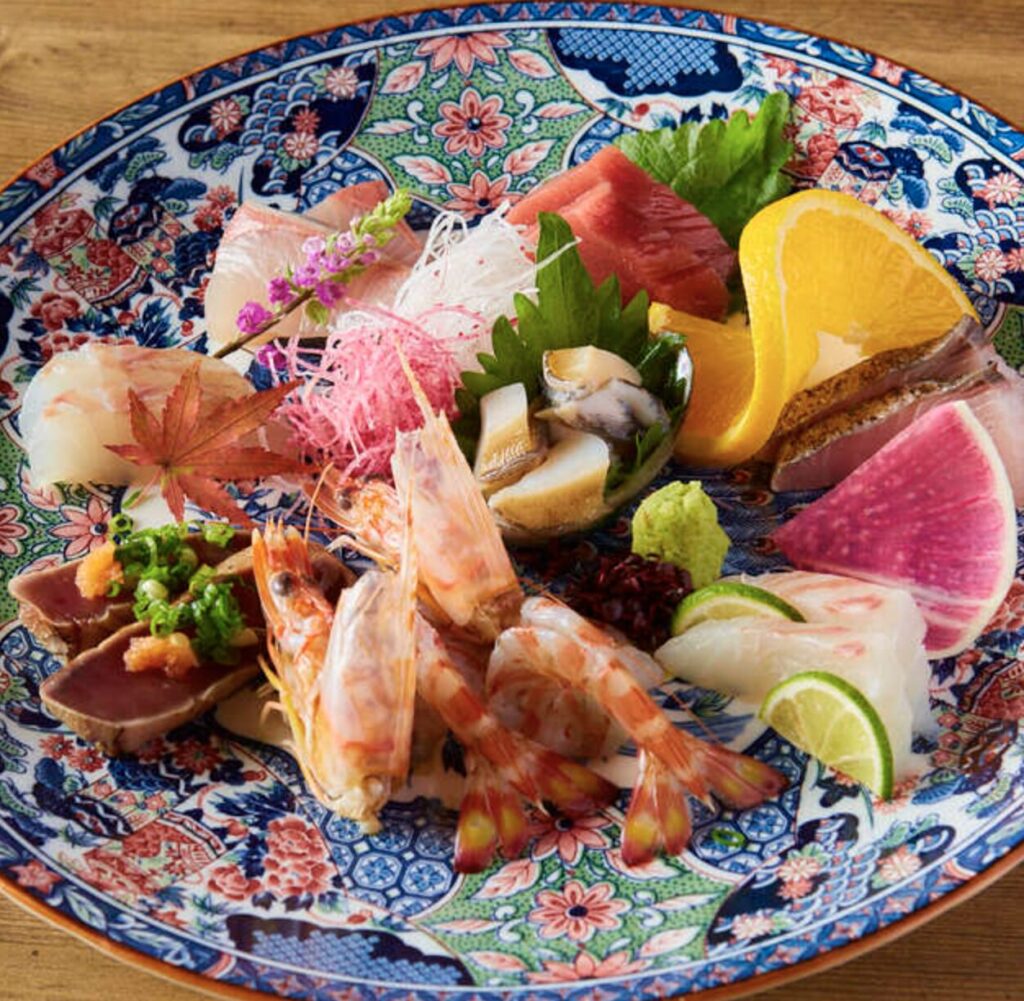 「博多海鮮 和たつ美 博多本店」では、活きの良さにこだわった海鮮料理を、全席個室または半個室の落ち着いた空間でゆったりとご堪能いただけます。店内の生け簀から引き上げたイカやカワハギを、その場で捌いてご提供する「活き造り」は、まさに鮮度の極み。
