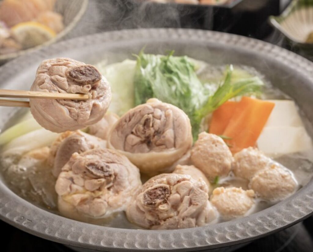 北部九州で大切に育てた銘柄鶏「華味鳥」を使用し、旨みあふれる自家製スープとともにご提供する水炊きは、まさに博多の味。