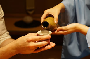 • 右手で徳利(とっくり)を持ち、左手を軽く添えて注ぐのが丁寧な所作