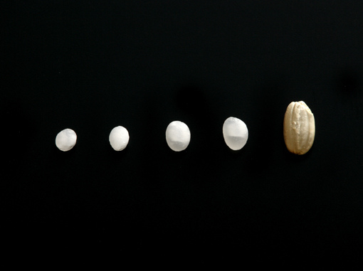 そこで、酒造りではこの外側の部分を削り取り、中心部の「心白(しんぱく)」を活かすようにします。